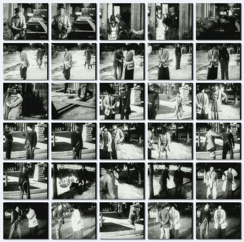 Charlie and another man compete in trying to help a young lady cross a muddy street. The rival finds a wooden plank which Charlie takes from him. |